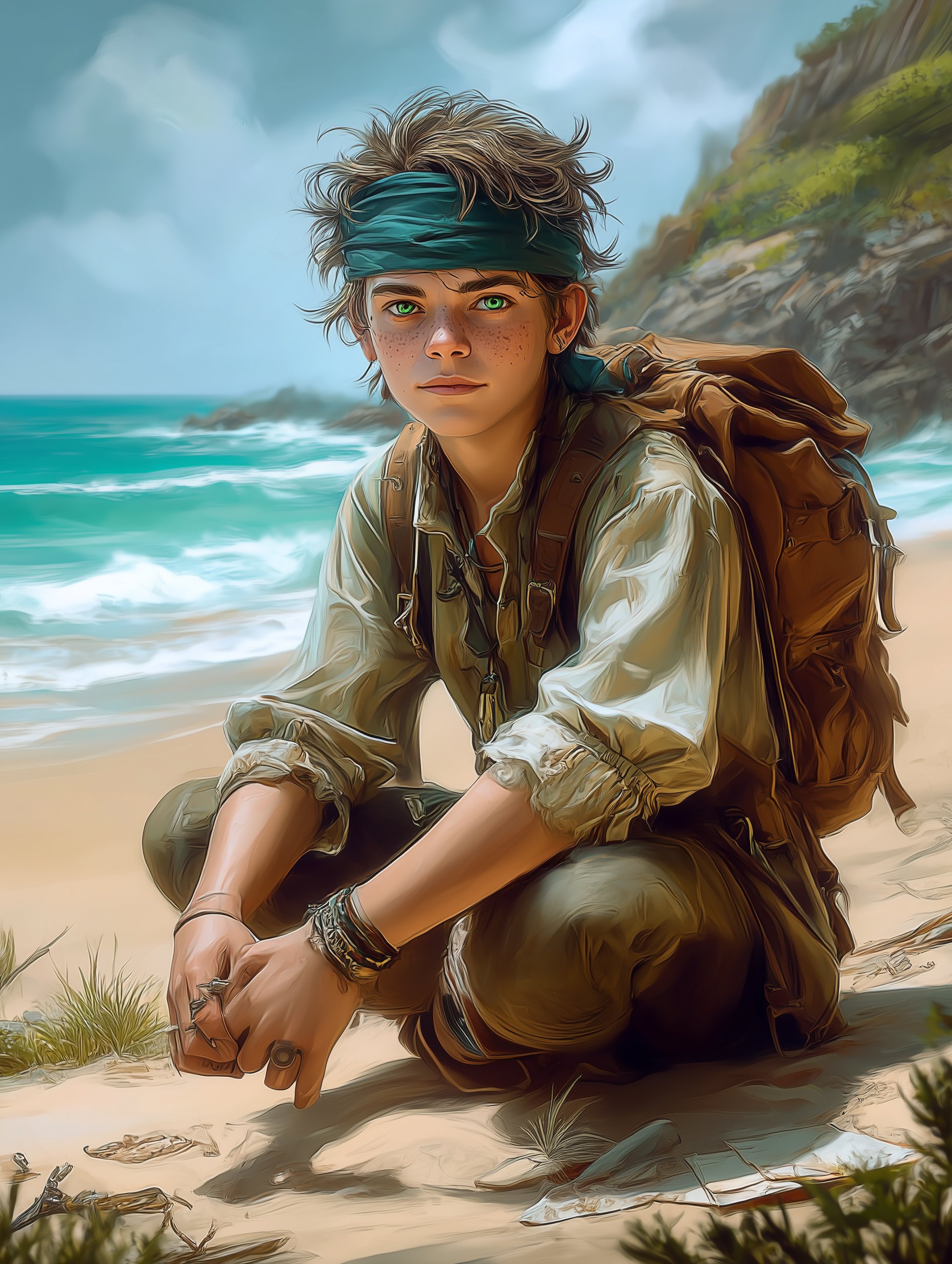 Sebastian stood frozen before the weathered door of his family's cottage, unable to tear his gaze from the departing ship on the horizon. The vessel grew smaller against the endless blue, taking with it Iihljiwaas and his three months of freedom. Sebastian’s hands trembled slightly at his sides, as a heaviness filled his chest.